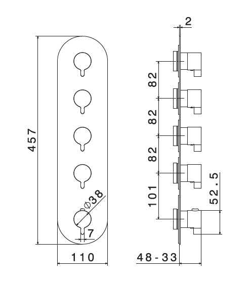 Newform Ergo Bateria prysznicowa termostatyczna podtynkowa z czterema wyjściami część zewnętrzna chrom 67624E.21.018