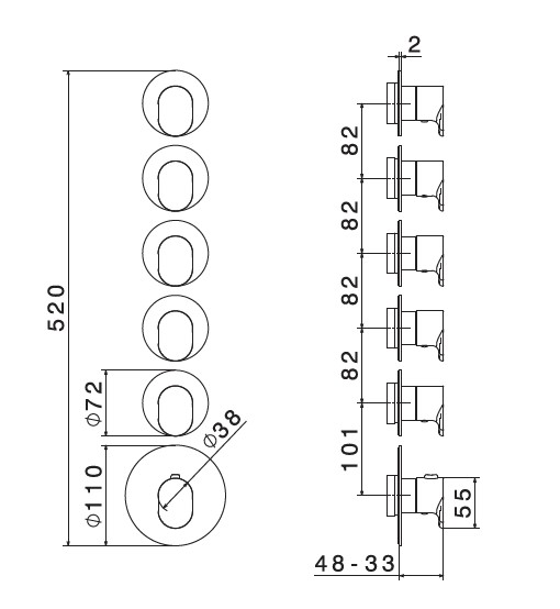 Newform Linfa II Bateria prysznicowa termostatyczna podtynkowa z pięcioma wyjściami część zewnętrzna chrom 67632E.21.018