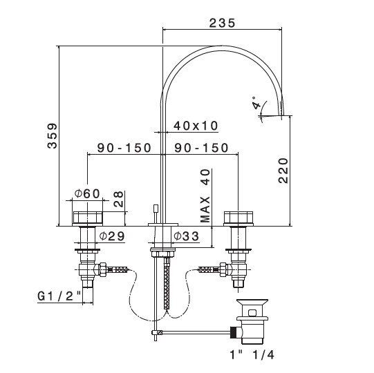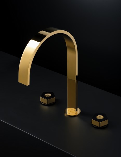 Newform Park Limited Edition Bateria umywalkowa 3-otworowa z korkiem z wysoką wylewką błyszczące złoto PVD/czarny mat 69700.62.093