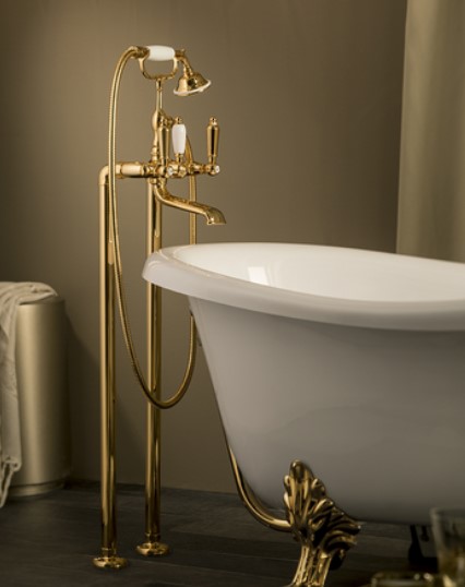 Newform Daytime Style Bateria wannowa podłogowa z kolumnami z zestawem prysznicowym złoty 69185C.66.019