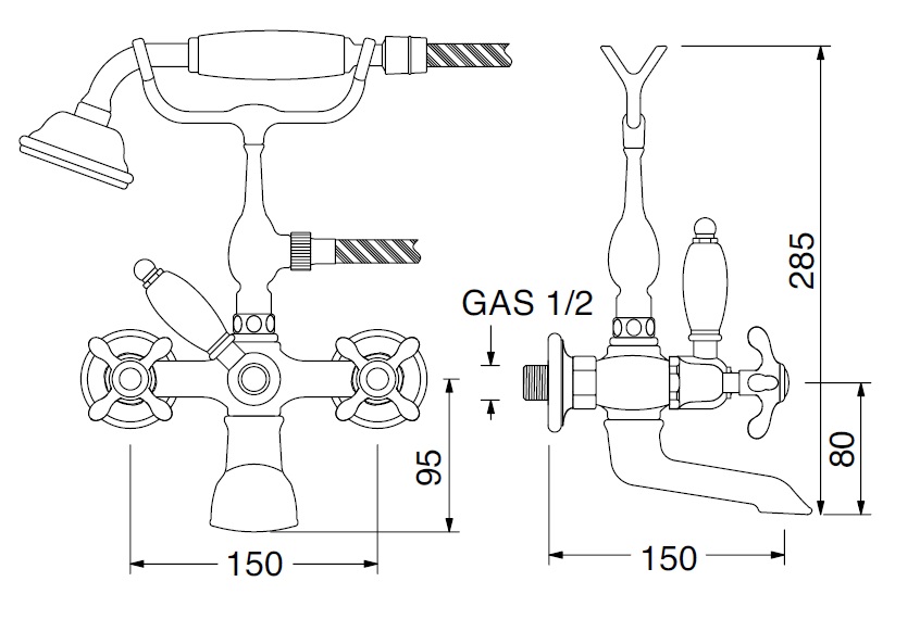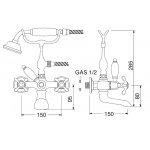 Sbordoni Firenze Bateria wannowo-prysznicowa ścienna z wężem i słuchawką Natural Brass FI116ON