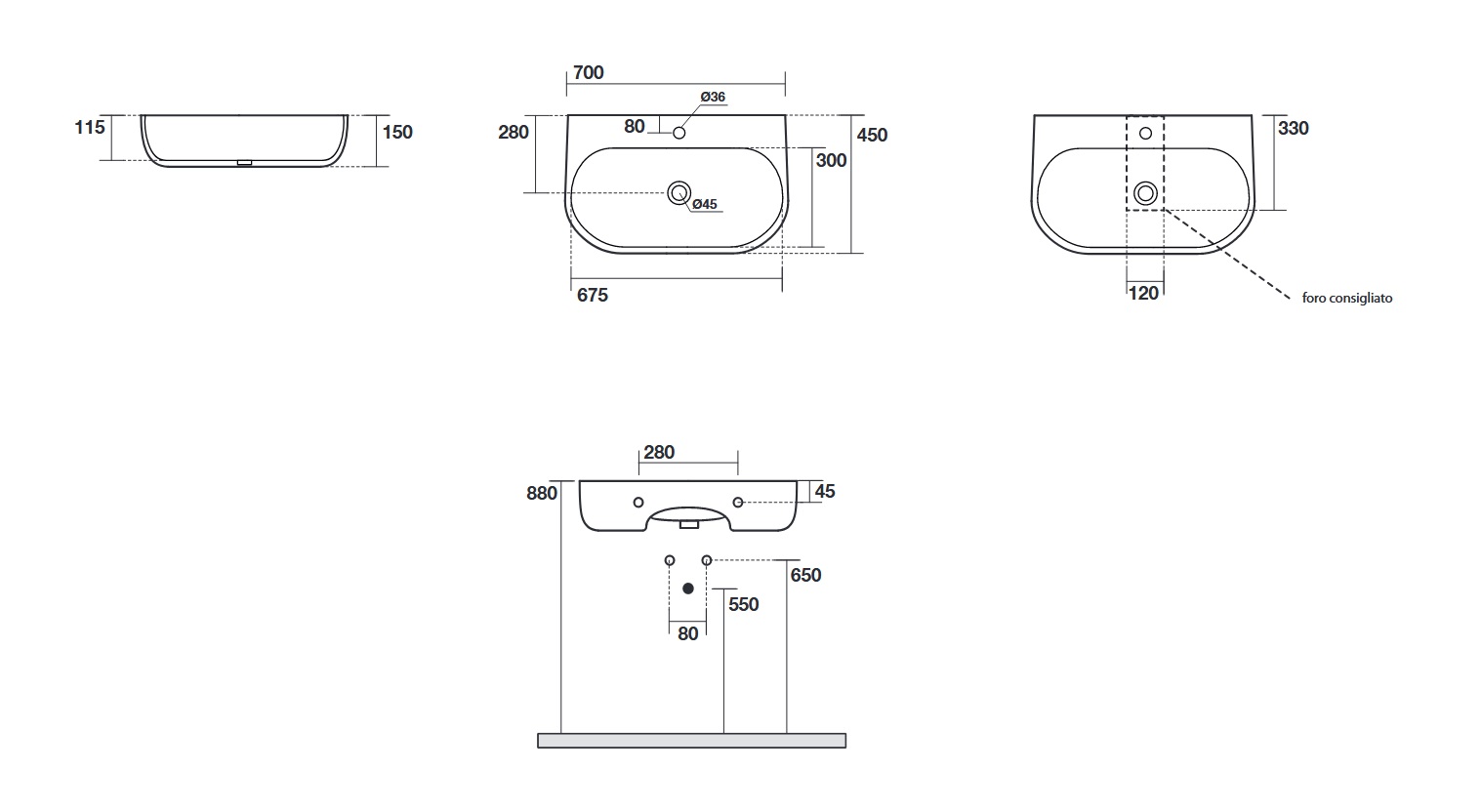 Kerasan Nolita Umywalka Ścienna/Stawiana na Blat 70x45 cm Biała 534201