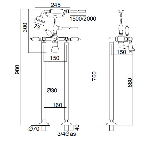 Sbordoni Livia Bateria wannowo-prysznicowa wolnostojąca z wężem, słuchawką chrom LI116cBCR