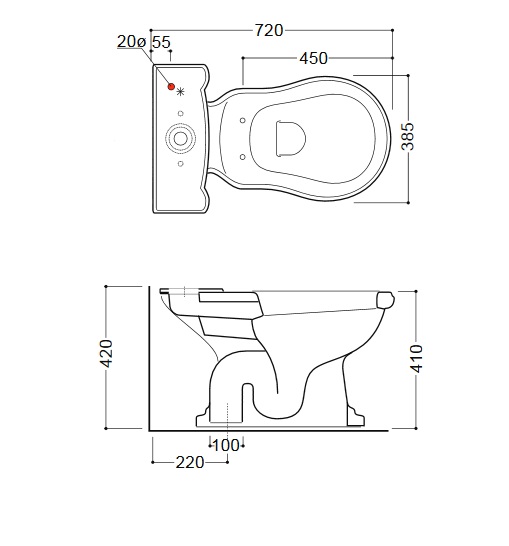 Kerasan Retro Miska WC do Kompaktu 38,5x72 cm Czarny 101304