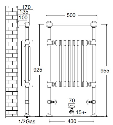 Sbordoni Grzejnik łazienkowy podłogowy-ścienny z aluminiowym elementem centralnym 50x17x95,5 cm chrom SBSPAV3/1GCR