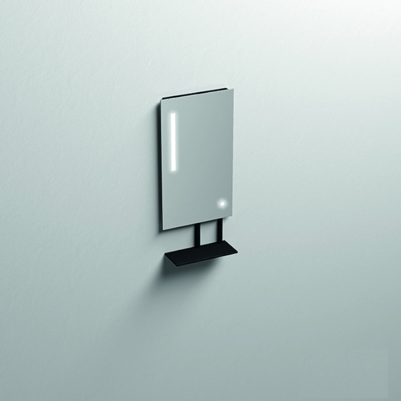 Kerasan Lustro ścienne 45x86 cm z półką metalową i oświetleniem LED Czarny mat 933131