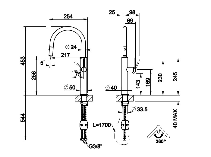 Gessi 316 Bateria kuchenna z obrotową i wyciąganą wylewką Steel Brushed 60026.239