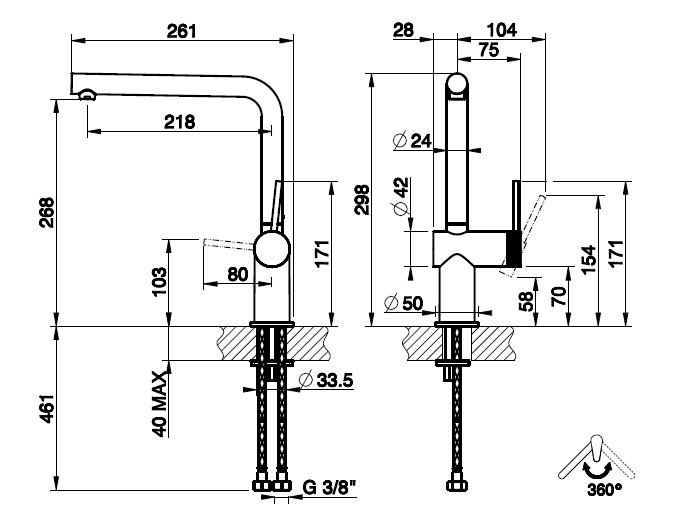 Gessi Inedito Bateria kuchenna z obrotową wylewką Chrom 60471.031