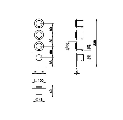 Gessi 316 Wellness Bateria prysznicowa termostatyczna ścienna z trzema wyjściami element zewnętrzny steel brushed 54506.239