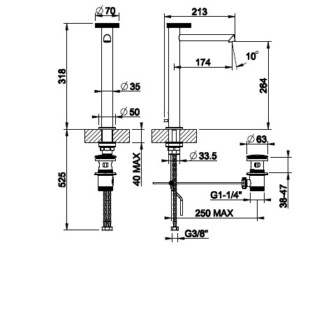 Gessi Anello Bateria umywalkowa jednootworowa wysoka z długą wylewką z korkiem chrom 63305.031