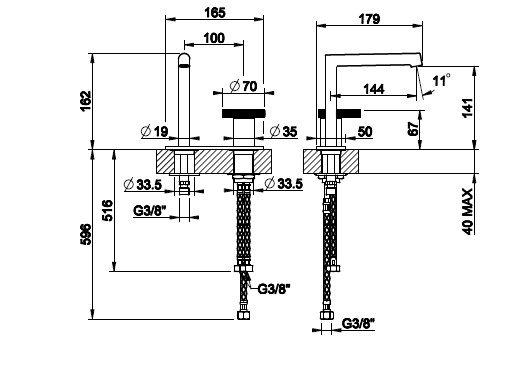 Gessi Anello Bateria umywalkowa 2-otworowa chrom 63315.031