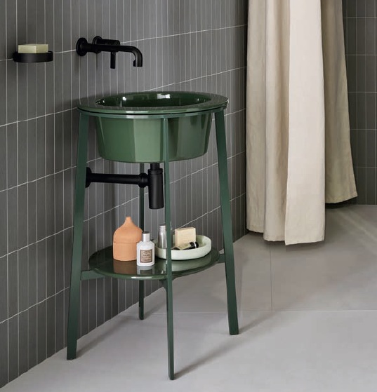 Cielo Catino Tondo Umywalka Ø50 biały mat + stelaż czarny mat + półka lavagna CALATTL+CASTTNM+CAPITLV