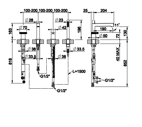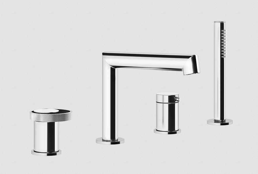 Gessi Anello Bateria wannowa 4-otworowa z przełącznikiem, wylewką, wężem i słuchawką chrom 63337.031
