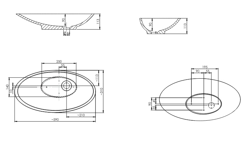 Omnires Malta M+ Umywalka nablatowa 59x31 cm Biały połysk MALTABP