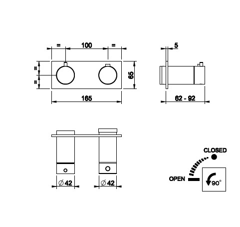 Gessi Anello Bateria prysznicowa termostatyczna ścienna z przełącznikiem 1-drożnym część zewnętrzna chrom 63332.031