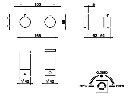 Gessi Anello Bateria prysznicowa termostatyczna ścienna z przełącznikiem 2-drożnym część zewnętrzna chrom 63334.031