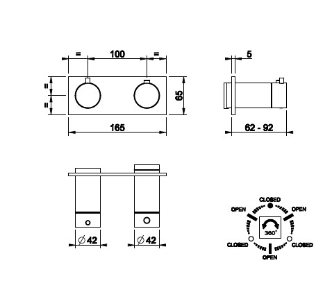 Gessi Anello Bateria prysznicowa termostatyczna ścienna z przełącznikiem 3-drożnym część zewnętrzna chrom 63336.031