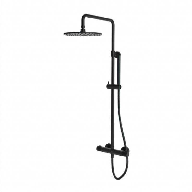 Omnires Contour Zestaw prysznicowy termostatyczny ścienny z deszczownicą Ø 250 mm i słuchawką prysznicową na drążku Antracyt CT8044AT