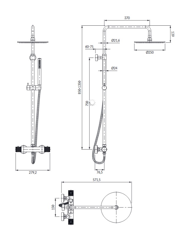 Średnica deszczownicy: 250 mm