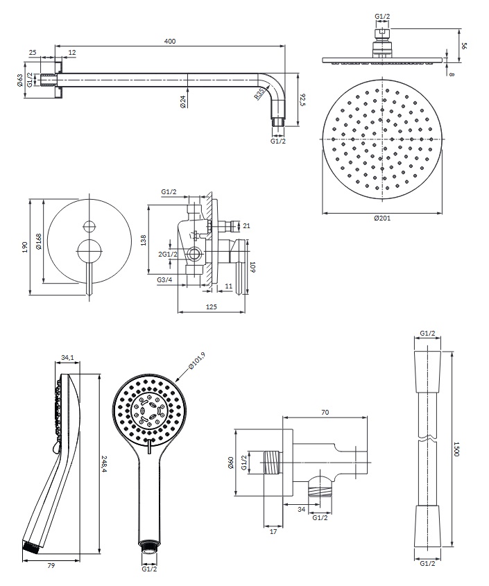 Omnires Y Zestaw prysznicowy podtynkowy z deszczownicą Ø 200 mm i słuchawką prysznicową Czarny SYSY38BL