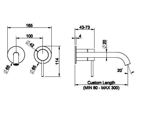 Gessi 316 Flessa Bateria umywalkowa ścienna bez korka element zewnętrzny steel brushed 54089.239