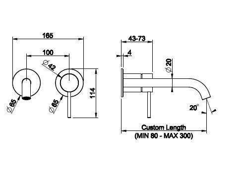 Gessi 316 Meccanica Bateria umywalkowa ścienna element zewnętrzny steel brushed 54289.239