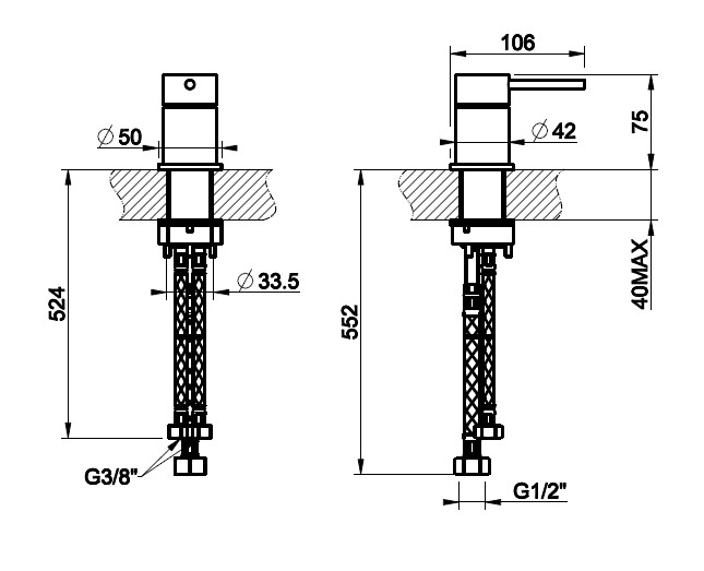 • Montaż: Jednootworowy