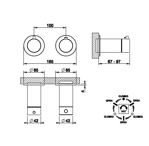 Gessi 316 Bateria prysznicowa termostatyczna ścienna z przełącznikiem 3-drożnym element zewnętrzny steel brushed 54236.239