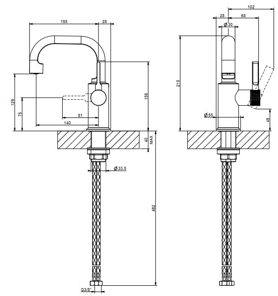 Gessi Inciso Bateria umywalkowa jednootworowa bez korka Black Metal Brushed PVD 58009.707