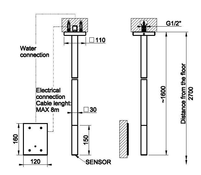 Gessi Rettangolo Bateria umywalkowa elektroniczna sufitowa element zewnętrzny chrom 20024.031
