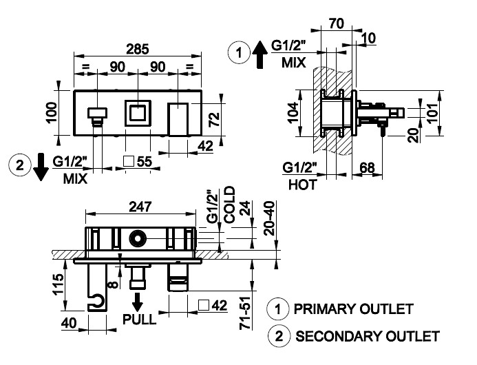 Gessi Rettangolo T Bateria prysznicowa ścienna z przełącznikiem 2-drożnym element zewnętrzny chrom 44911.031