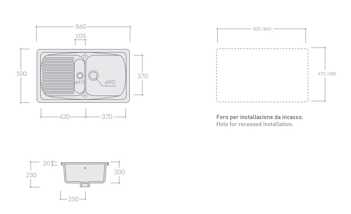 Galassia GENIUS Zlew dwukomorowy 86x50 cm druga komora mniejsza Biały 5103D90