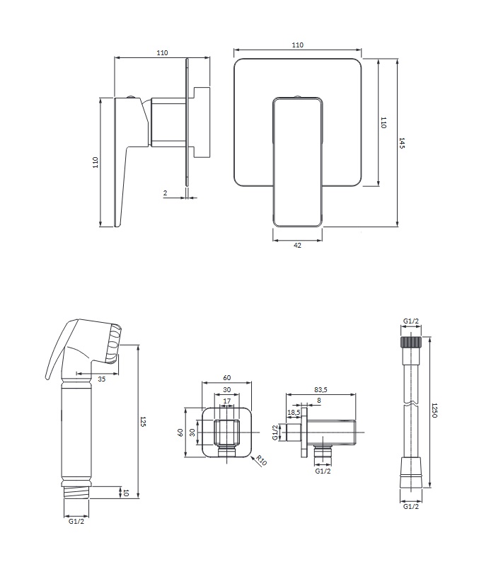 Omnires Parma Zestaw bidetowy podtynkowy Chrom SYSPMBI1CR