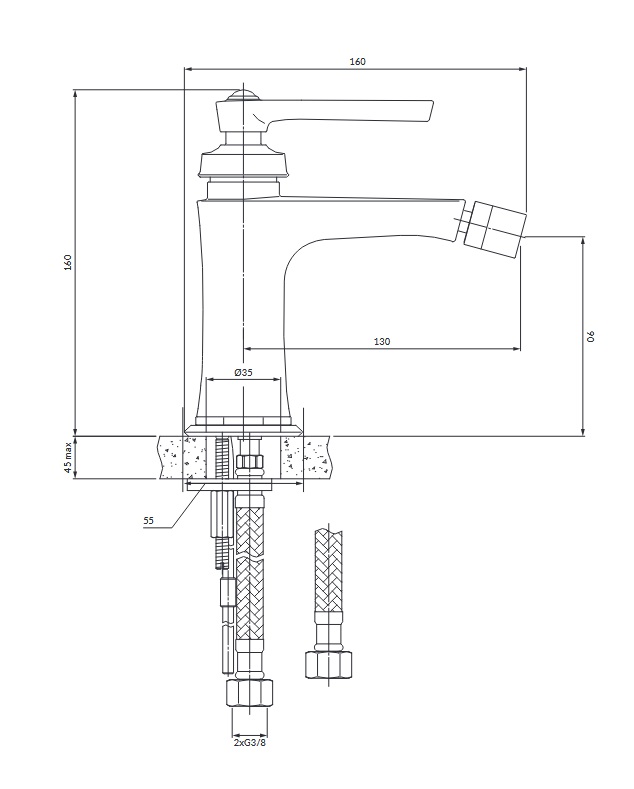 Omnires Armance Bateria bidetowa jednootworowa bez korka Chrom AM5220CR
