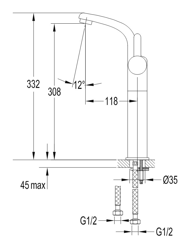 Omnires Darling Bateria umywalkowa jednootworowa wysoka z korkiem klik-klak Czarny DA5013BL