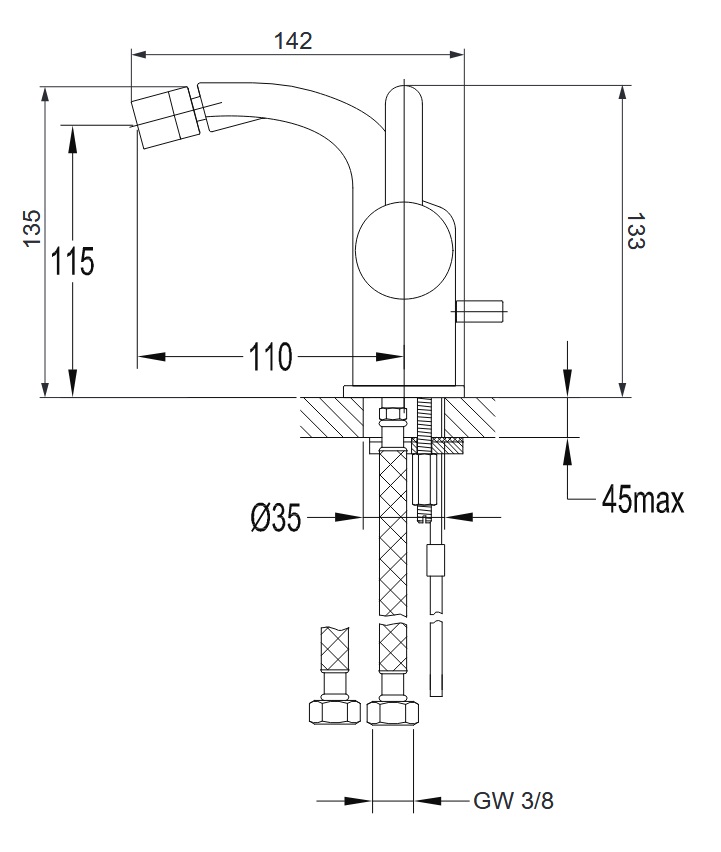 Omnires Darling Bateria bidetowa jednootworowa bez korka Czarny DA5020BL