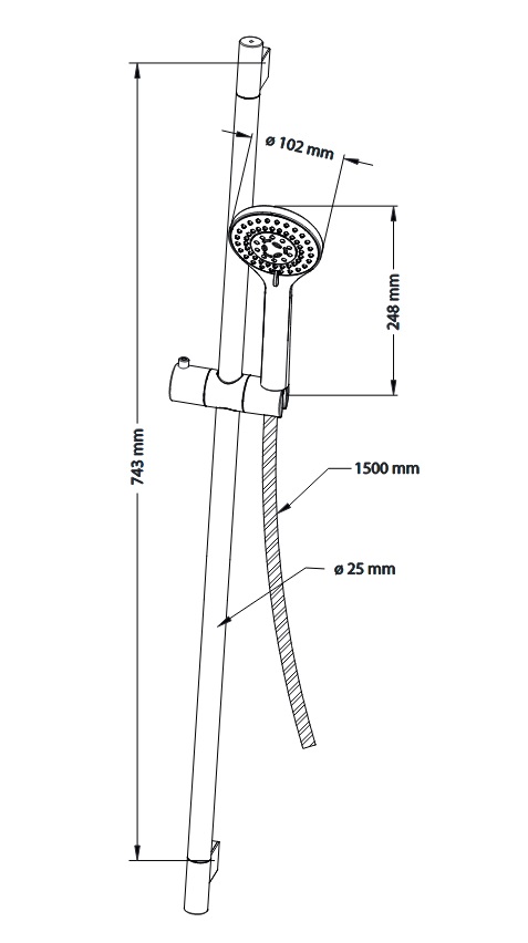drążek prysznicowy stalowy, z uchwytem suwanym