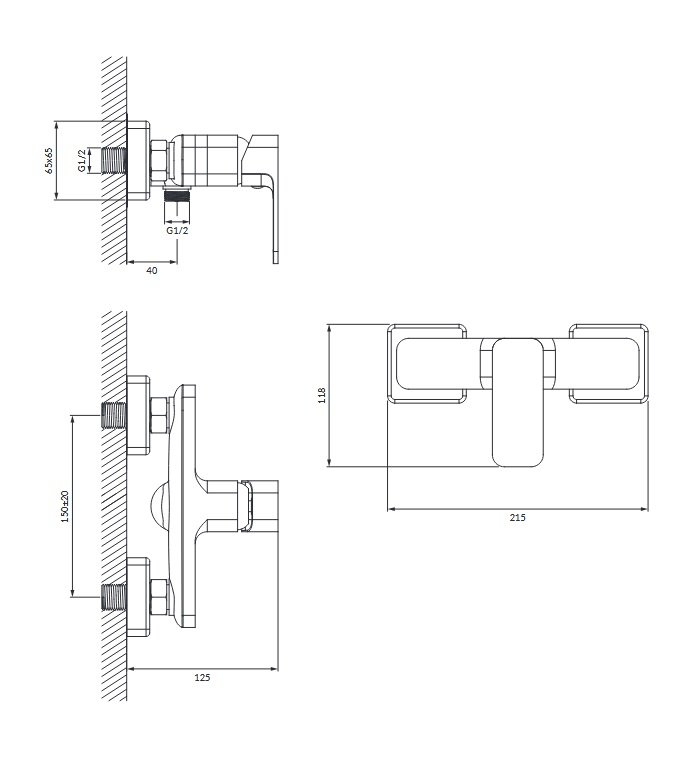 Omnires Apure Bateria prysznicowa ścienna Chrom AP2240CR