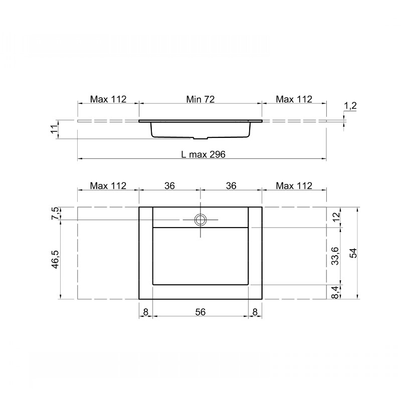 Umywalka bez przelewu, z możliwością wybicia otworów na baterię