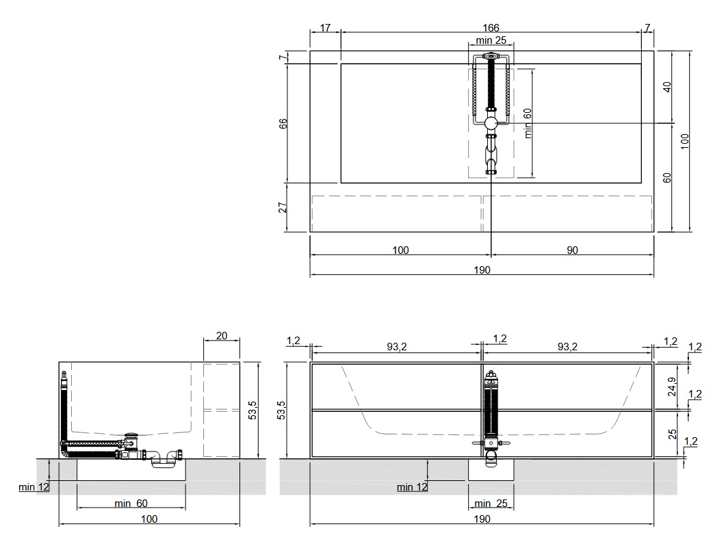 Wanna z rantem na zamontowanie baterii z lewej lub prawej strony