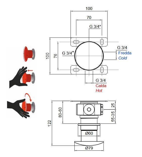 Antonio Lupi Mayday Bateria jednouchwytowa bidetowa podtynkowa Satin stainless steel MAYDAYHF