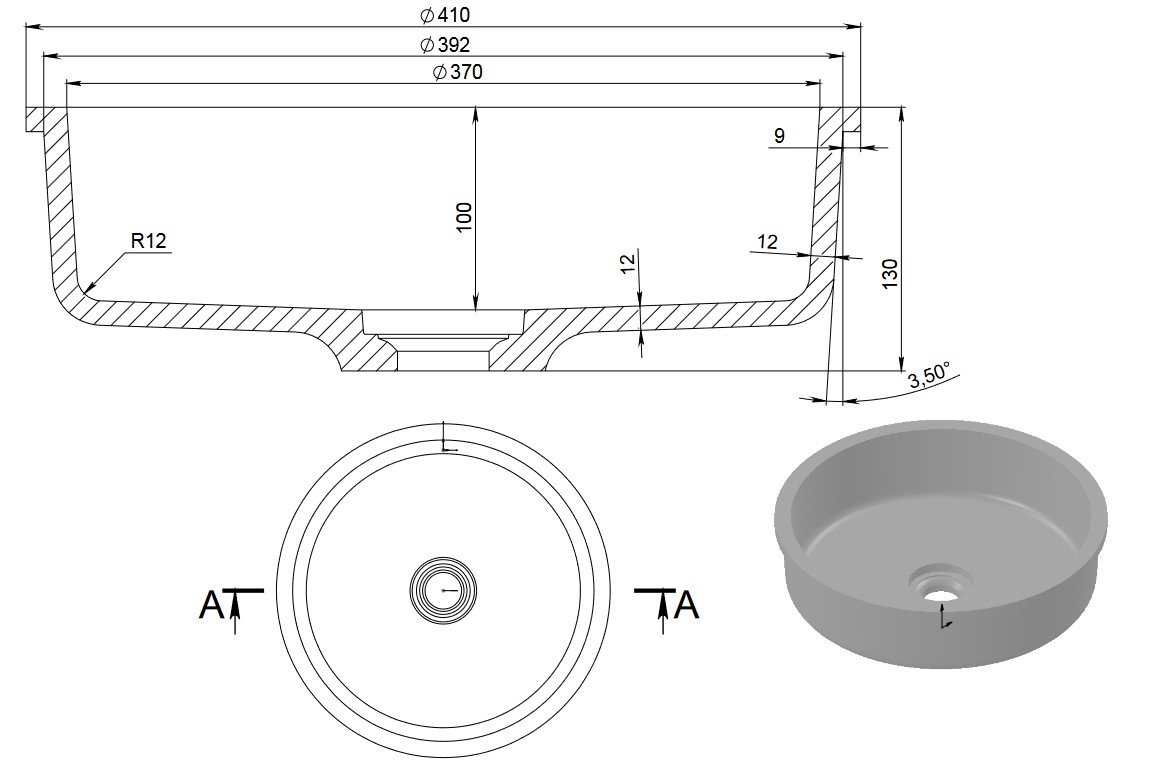 Holbi Uran Umywalka stawiana na blat Solid Color 1.02.015.11.3.RAL7031 WYPRZEDAŻ EKSPOZYCJI!!
