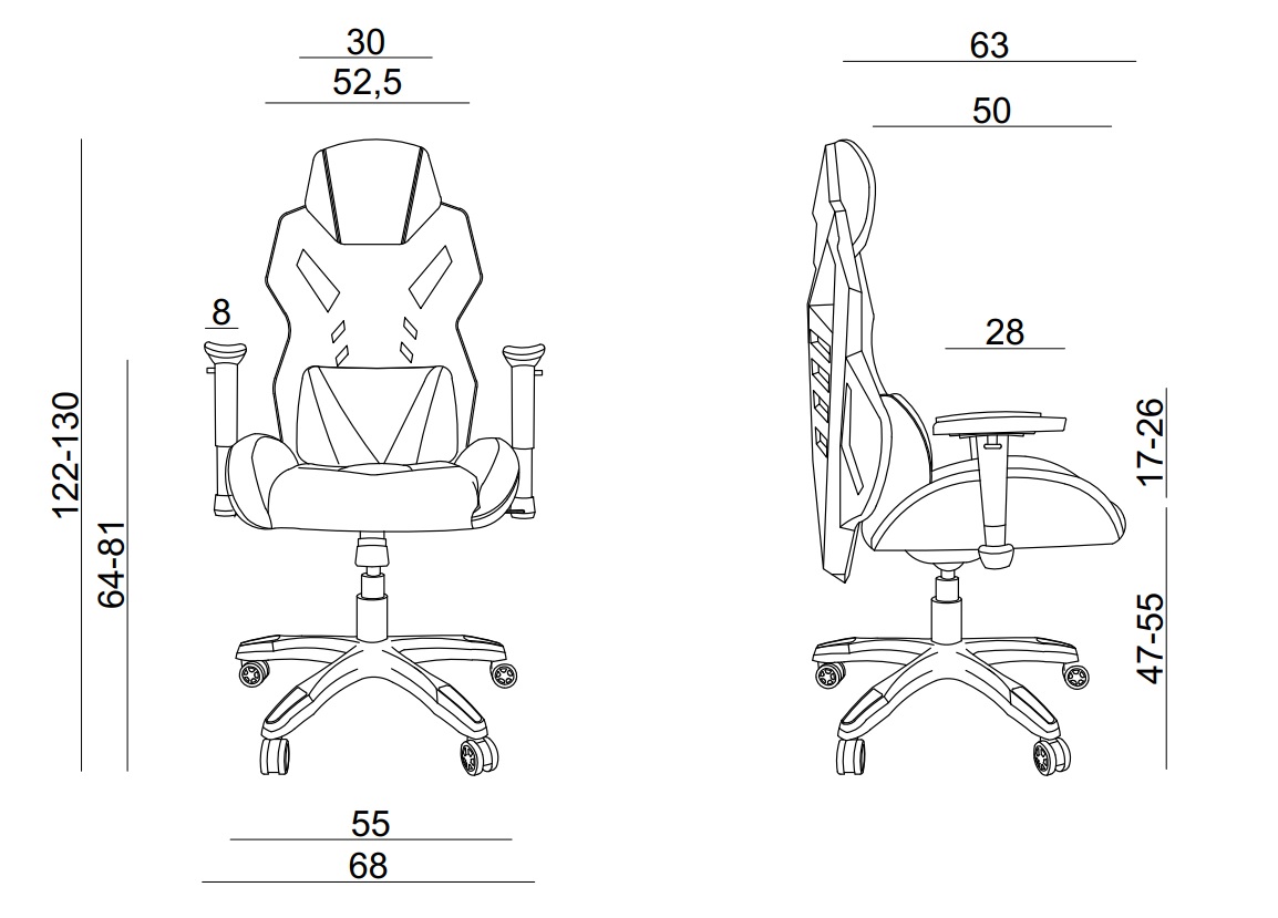 - Regulowane podłokietniki (góra-dół, wychylenie na boki), wyposażone w miękkie nakładki