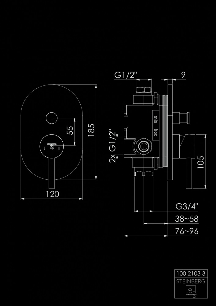 STEINBERG SERIA 100 Bateria wannowo-natryskowa podtynkowa element zewnętrzny Czarny mat 100.2103.3.S / 10021033S