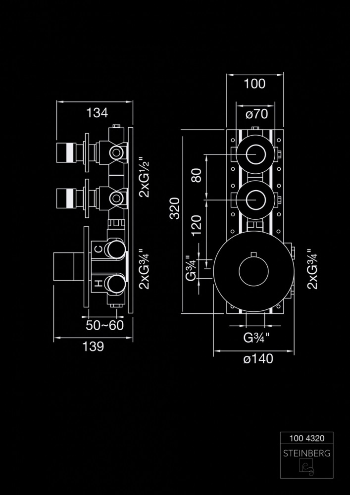STEINBERG SERIA 100 Bateria prysznicowa termostatyczna podtynkowa z 2 zaworami Chrom 100.4320 / 1004320