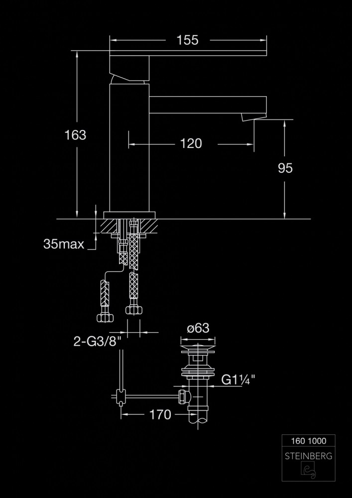 STEINBERG SERIA 160 Bateria umywalkowa jednootworowa z korkiem Chrom 160.1000 / 1601000