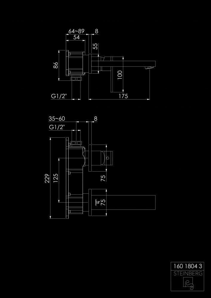 STEINBERG SERIA 160 Bateria umywalkowa jednouchwytowa podtynkowa element zewnętrzny Chrom 160.1804.3 / 16018043