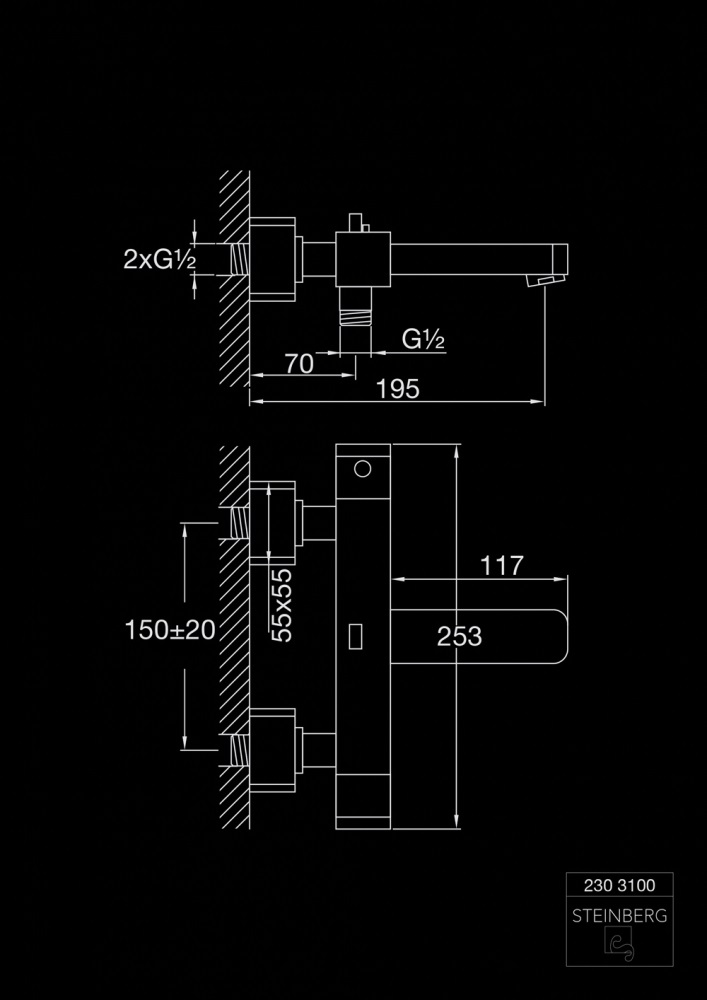 STEINBERG SERIA 230 Bateria wannowa termostatyczna ścienna Chrom 230.3100 / 2303100