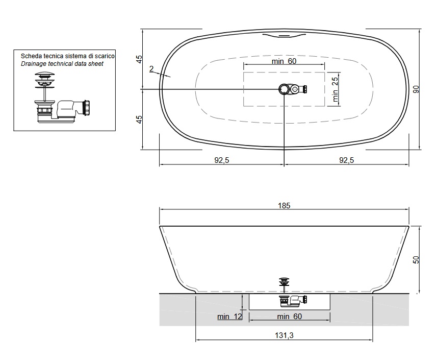 Antonio Lupi Baìa Wanna wolnostojąca 185x90 cm Melograno BAìAMELOGRANO