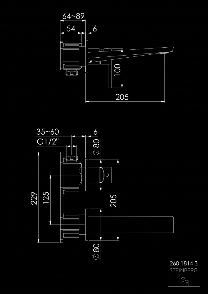 STEINBERG SERIA 260 Bateria umywalkowa jednouchwytowa podtynkowa element zewnętrzny Chrom 260.1814.3 / 26018143